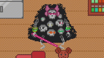 “Welcome back, Ravelord Beato! Another day, another hero to beat so hard that they throw their controllers and ragequit. Most heroes are quite impatient and give up after only three tries. Use the WASD or arrow keys to move and the X, C and V buttons for abilities. The X button lets you do a powerful bonk with your glowstick. The C button spawns a horde of your minions, which you can push into the hero to make them explode on them 😉 The V button lets you throw your mighty glowstick at the hero. But be warned; the hero is not to be underestimated. The faster you finish your daily quota, the faster you can get back to raving! Good luck 🙂”